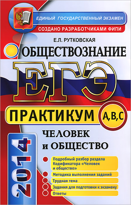 | Полное название книги | Е. Л. Рутковская ЕГЭ. Практикум по обществознанию. Человек и общество. Подготовка к выполнению заданий А, В, С |