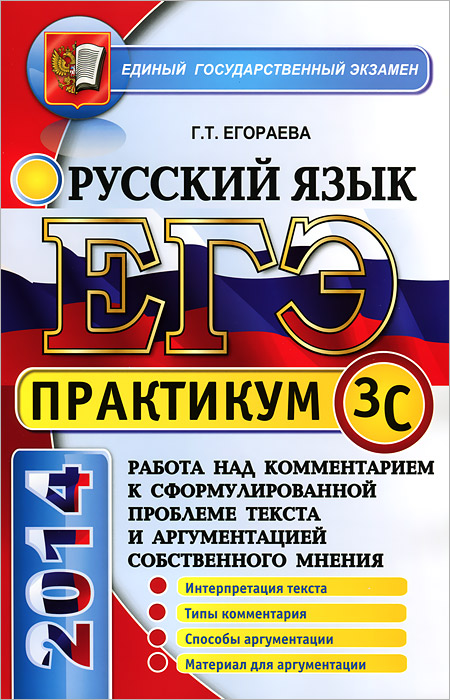 | Полное название книги | Г. Т. Егораева ЕГЭ. Русский язык. Практикум. Работа над комментарием к сформулированной проблеме текста и аргументацией собственного мнения |