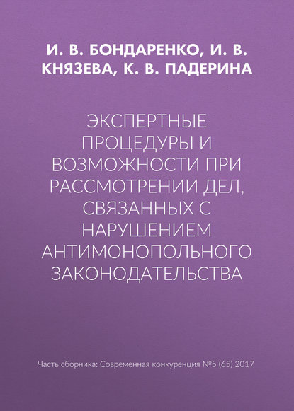 | Полное название книги | И. В. Князева, И. В. Бондаренко, К. В. Падерина Экспертные процедуры и возможности при рассмотрении дел, связанных с нарушением антимонопольного законодательства |