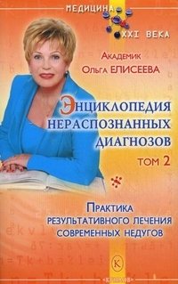| Полное название книги | О. И. Елисеева Энциклопедия нераспознанных диагнозов. Т. 2. Практика результативного лечения современных недугов. Елисеева О.И |