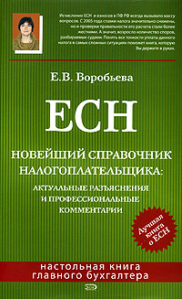 | Полное название книги | Е. В. Воробьева ЕСН. Новейший справочник налогоплательщика. Актуальные разъяснения и профессиональные комментарии |