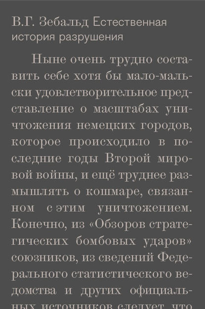 | Полное название книги | Нина Николаевна Федорова, Винфрид Георг Зебальд Естественная история разрушения |