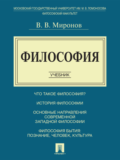 Подробная информация о книге «Философия. Учебник Владимир Васильевич Миронов». Сайт не предоставляет возможности читать онлайн или скачать бесплатно книгу «Философия. Учебник Владимир Васильевич Миронов».