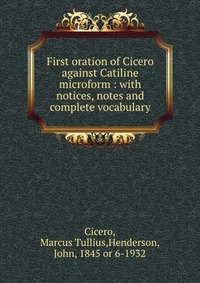 | Полное название книги | Marcus Tullius Cicero First oration of Cicero against Catiline microform : with notices, notes and complete vocabulary |