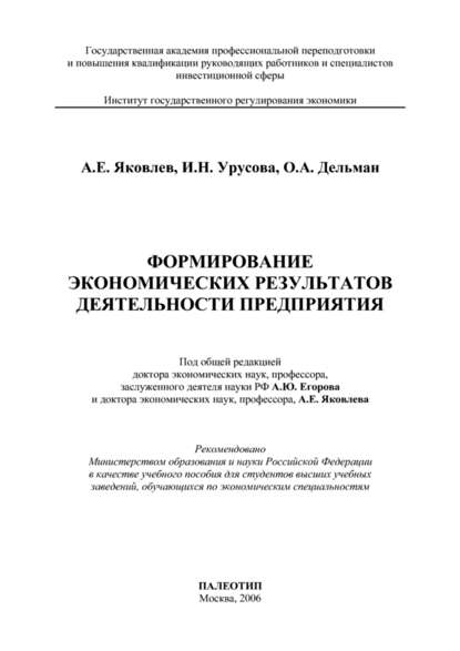| Полное название книги | А. Е. Яковлев, Олег Александрович Дельман, И. Н. Урусова Формирование экономических результатов деятельности предприятия |