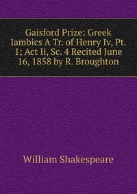 | Полное название книги | Уильям Шекспир Gaisford Prize: Greek Iambics A Tr. of Henry Iv, Pt. 1; Act Ii, Sc. 4 Recited June 16, 1858 by R. Broughton |