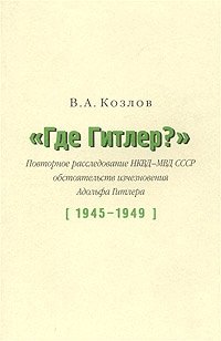 | Полное название книги | В. А. Козлов "Где Гитлер?" Повторное расследование НКВД-МВД СССР обстоятельств исчезновения Адольфа Гитлера (1945 - 1949) |