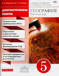 | Полное название книги | Ирина Ивановна Баринова, Максим Сергеевич Соловьев География. 5 класс. Диагностические работы к учебнику И. И. Бариновой и др. Вертикаль. ФГОС |
