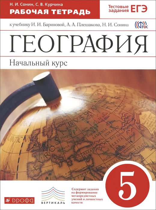 | Полное название книги | Н. И. Сонин, С. В. Курчина География. Начальный курс. 5 класс. Рабочая тетрадь |