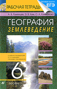 | Полное название книги | Э. В. Ким, О. А. Климанова, А. В. Румянцев География. Землеведение. 6 класс. Рабочая тетрадь |