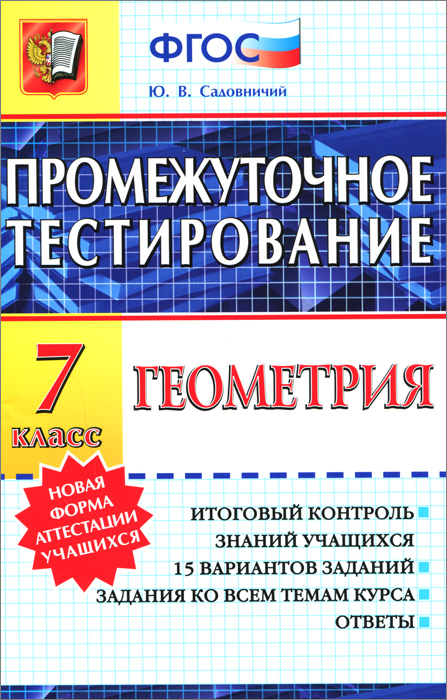 | Полное название книги | Ю. В. Садовничий Геометрия. 7 класс. Промежуточное тестирование |
