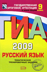 | Полное название книги | И. Б. Маслова, А. В. Терентьева, Л. С. Степанова ГИА 2009. Русский язык: тематические тренировочные задания: 9 класс |