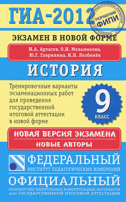 | Полное название книги | И. А. Артасов ГИА-2012. Экзамен в новой форме. История. 9 класс |
