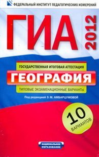 | Полное название книги | Э. М. Амбарцумова, С. Е. Дюкова, В. В. Барабанов ГИА-2012. География. Типовые экзаменационные варианты. 10 вариантов |