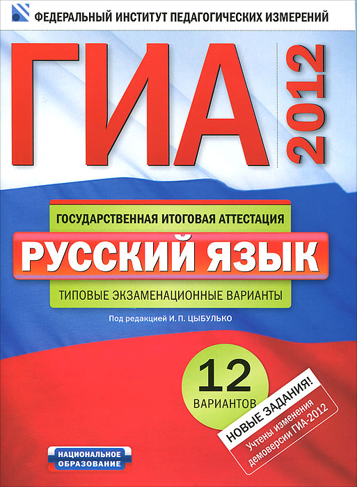 | Полное название книги | Е. Н. Зверева, И. П. Цыбулько ГИА-2012. Русский язык. Типовые экзаменационные варианты. 12 вариантов |