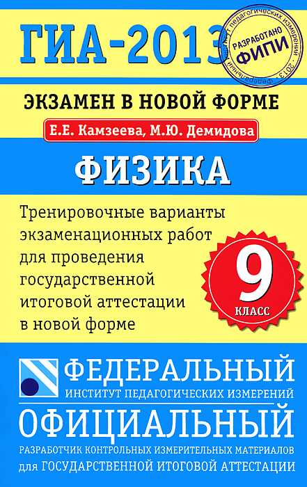| Полное название книги | М. Ю. Демидова, Е. Е. Камзеева ГИА-2013. Экзамен в новой форме. Физика. 9 класс |