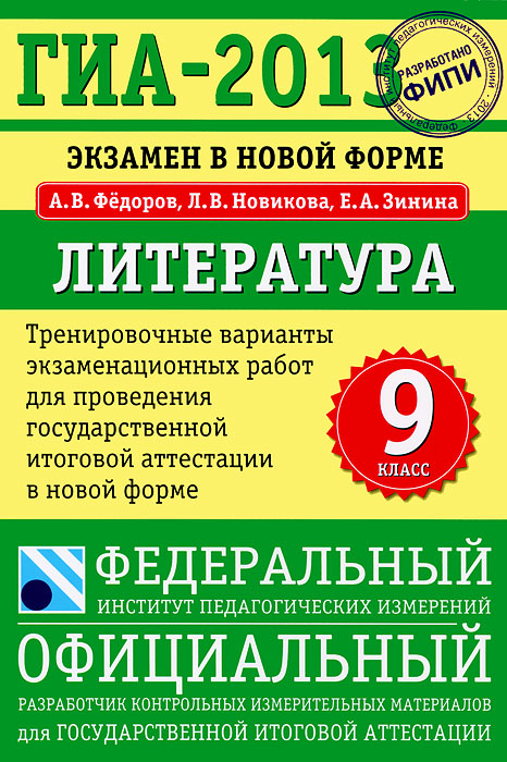 | Полное название книги | А. В. Федоров ГИА-2013. Экзамен в новой форме. Литература. 9 класс |