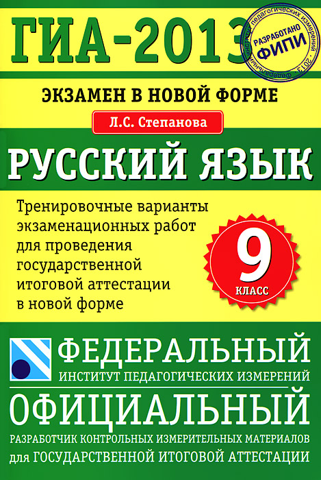 | Полное название книги | Л. С. Степанова ГИА-2013. Экзамен в новой форме. Русский язык. 9 класс |