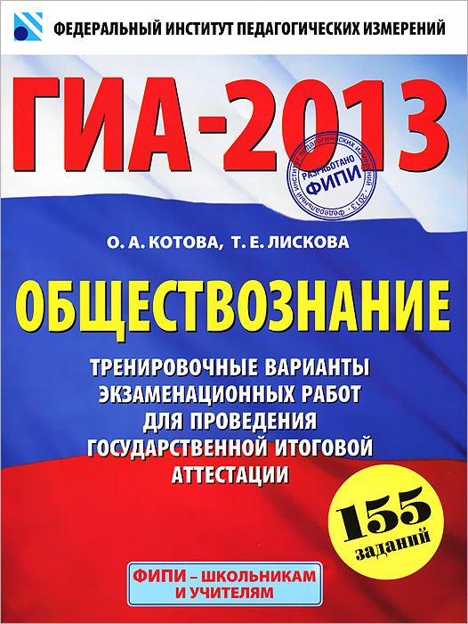 | Полное название книги | О. А. Котова, Т. Е. Лискова ГИА-2013. Обществознание. Тренировочные варианты экзаменационных работ для проведения государственной итоговой аттестации |