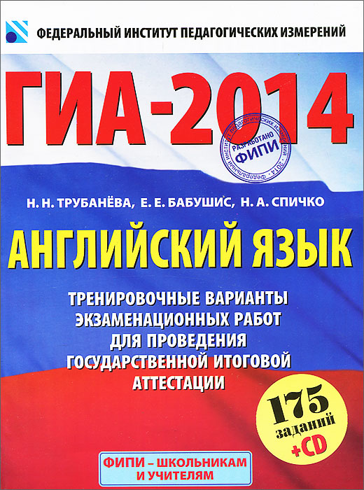 | Полное название книги | Н. Н. Трубанева, Н. А. Спичко, Е. Е. Бабушис ГИА-2014. Английский язык. 9 класс. Тренировочные варианты экзаменационных работ для проведения государственной итоговой аттестации (+ СD) |