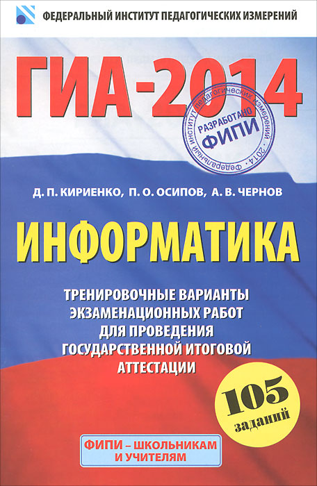 | Полное название книги | П. О. Осипов, Д. П. Кириенко, А. В. Чернов ГИА-2014. ФИПИ. Информатика. (60х90/16) Тренировочные варианты экзаменационных работ для подготовки к ГИА в новой форме. 9 класс |