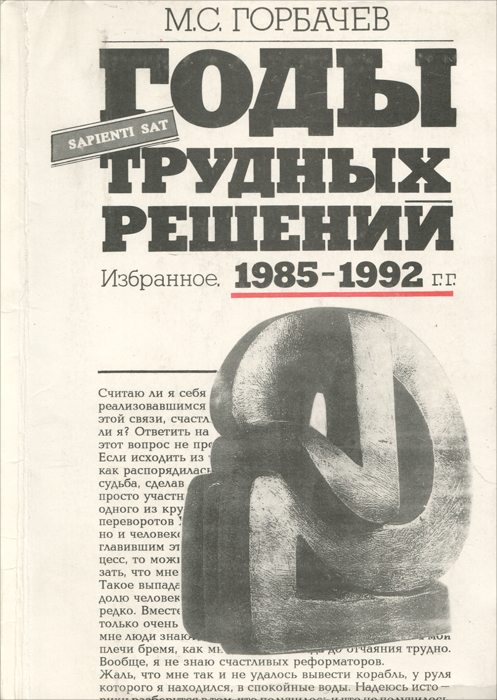 | Полное название книги | М. С. Горбачев Годы трудных решений. Избранное. 1985-1992 гг |