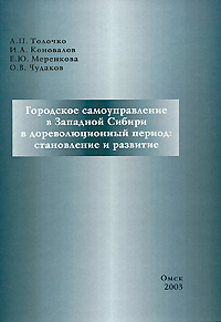 | Полное название книги | А. П. Толочко, И. А. Коновалов, О. В. Чудаков, Е. Ю. Меренкова Городское самоуправление в Западной Сибири в дореволюционный период. Становление и развитие |