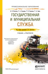 | Полное название книги | Т. В. Халилова, Г. А. Сульдина, Т. А. Занко, А. В. Кочетков Государственная и муниципальная служба. Учебник и практикум |