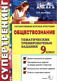 | Полное название книги | Е. Н. Калачева Государственная итоговая аттестация. 9 класс. Обществознание. Тематические тренировочные задания |
