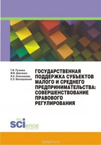 | Полное название книги | Ручкина Г.Ф., Ключников, Демченко М.В. Государственная поддержка субъектов малого и среднего предпринимательства. Совершенствование правового регулирования. Монография |