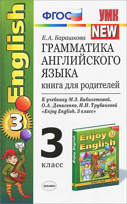 | Полное название книги | Е. А. Барашкова Грамматика английского языка. 3 класс. Книга для родителей. К учебнику М. З. Биболетовой, О. А. Денисенко, Н. Н. Трубаневой "Enjoy English. 3 класс" |