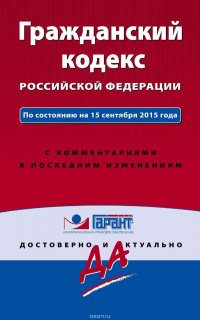 | Полное название книги | Т. Дегтярева Гражданский кодекс Российской Федерации. По состоянию на 15 сентября 2015 года. С комментариями к последним изменениям |