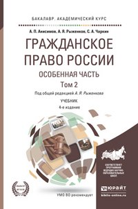 | Полное название книги | С. А. Чаркин, А. П. Анисимов, А. Я. Рыженков Гражланское право России. Особенная часть в 2 Т. Том 2 4-е изд., пер. и доп. Учебник для академического бакалавриата |