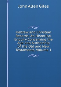 | Полное название книги | John Allen Giles Hebrew and Christian Records: An Historical Enquiry Concerning the Age and Authorship of the Old and New Testaments, Volume 1 |