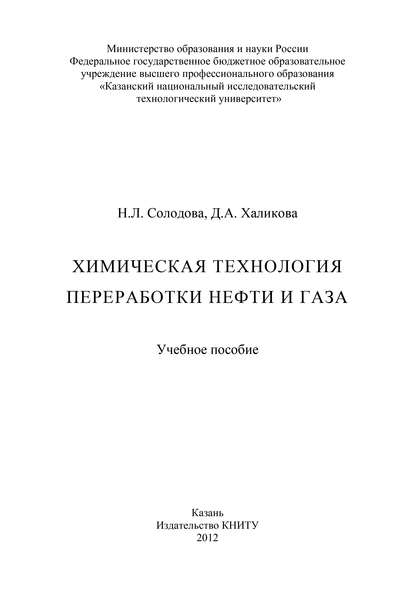 | Полное название книги | Н. Л. Солодова, Д. А. Халикова Химическая технология переработки нефти и газа |