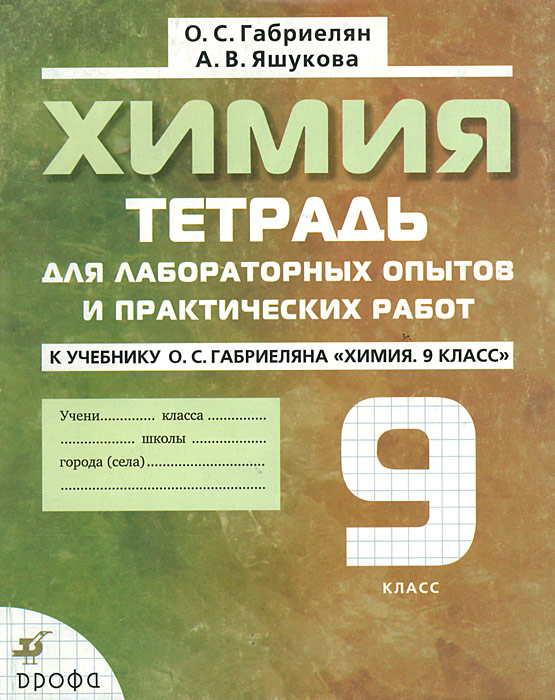 | Полное название книги | О. С. Габриелян, А. В. Яшукова Химия: 9 класс: Тетрадь для лабораторных опытов и практических работ к учебнику О.С.Габриеляна "Хими |