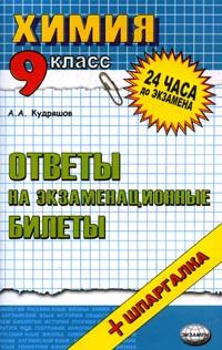 | Полное название книги | А. А. Кудряшов Химия: Ответы на экзаменационные билеты: 9 класс: Учебное пособие +Шпаргалка Изд. 6-е, стереотип |