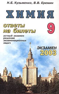 | Полное название книги | В. В. Еремин, Н. Е. Кузьменко Химия. Ответы на экзаменационные билеты 9 класса |