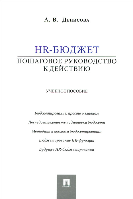 | Полное название книги | А. В. Денисова HR-бюджет.Пошаговое руководство к действию.Уч.пос.-М.:Проспект,2015 |