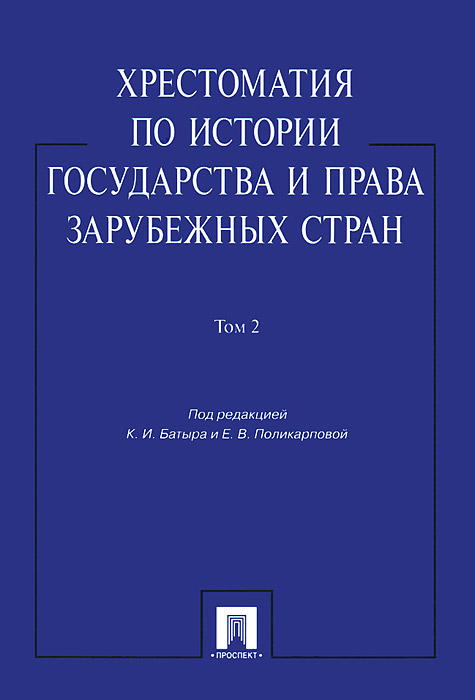 | Полное название книги | Поликарпова Е., ред, Батыр К.И. Хрестоматия по истории государства и права зарубежных стран. В 2 томах. Том 2 |