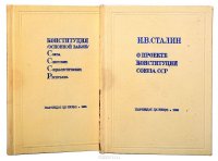 | Полное название книги | Иосиф Сталин И. В. Сталин. О пректе конституции Союза ССР. Конституция (основно закон) Союза Советских Социалистических Республик (комплект из 2 книг) |