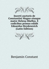 | Полное название книги | Benjamin Constant Incerti auctoris de Constantini Magno eiusque matre Helena libellus. E codicibus primus edidit Eduardus Heydenreich (Latin Edition) |
