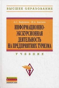 | Полное название книги | А. С. Баранов, И. А. Бисько, Е. И. Под ред. Богданов Информационно-экскурсионная деятельность на предприятиях туризма: учебник. Баранов А.С., Бисько И.А., Под ред. Богданов Е.И |