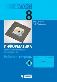 | Полное название книги | И. Г. Семакин, Т. В. Ромашкина Информатика. 8 класс. Рабочая тетрадь. В 4 частях. Часть 4. Табличные вычисления на компьютере |