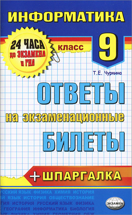 | Полное название книги | Т. Е. Чуркина Информатика. Ответы на экзаменационные билеты. 9 класс |