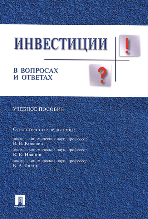 | Полное название книги | В. В. Отв. ред. Иванов, В. В. Ковалев Инвестиции в вопросах и ответах.Уч.пос.-М.:Проспект,2015 |