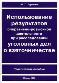 | Полное название книги | Ю. П. Гармаев Использование результатов оперативно-розыскной деятельности при расследовании уголовных дел о взяточничестве |