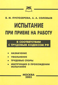 | Полное название книги | А. А. Соловьев, В. М. Пустозерова Испытание при приеме на работу в соответствии с Трудовым кодексом РФ |
