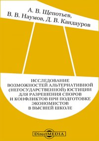 | Полное название книги | Д. В. Кандауров, А. В. Щепотьев, В. В. Наумов Исследование возможностей альтернативной (негосударственной) юстиции для разрешения споров и конфликтов при подготовке экономистов в высшей школе |