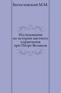 | Полное название книги | М. М. Богословский Исследования по истории местного управления при Петре Великом |